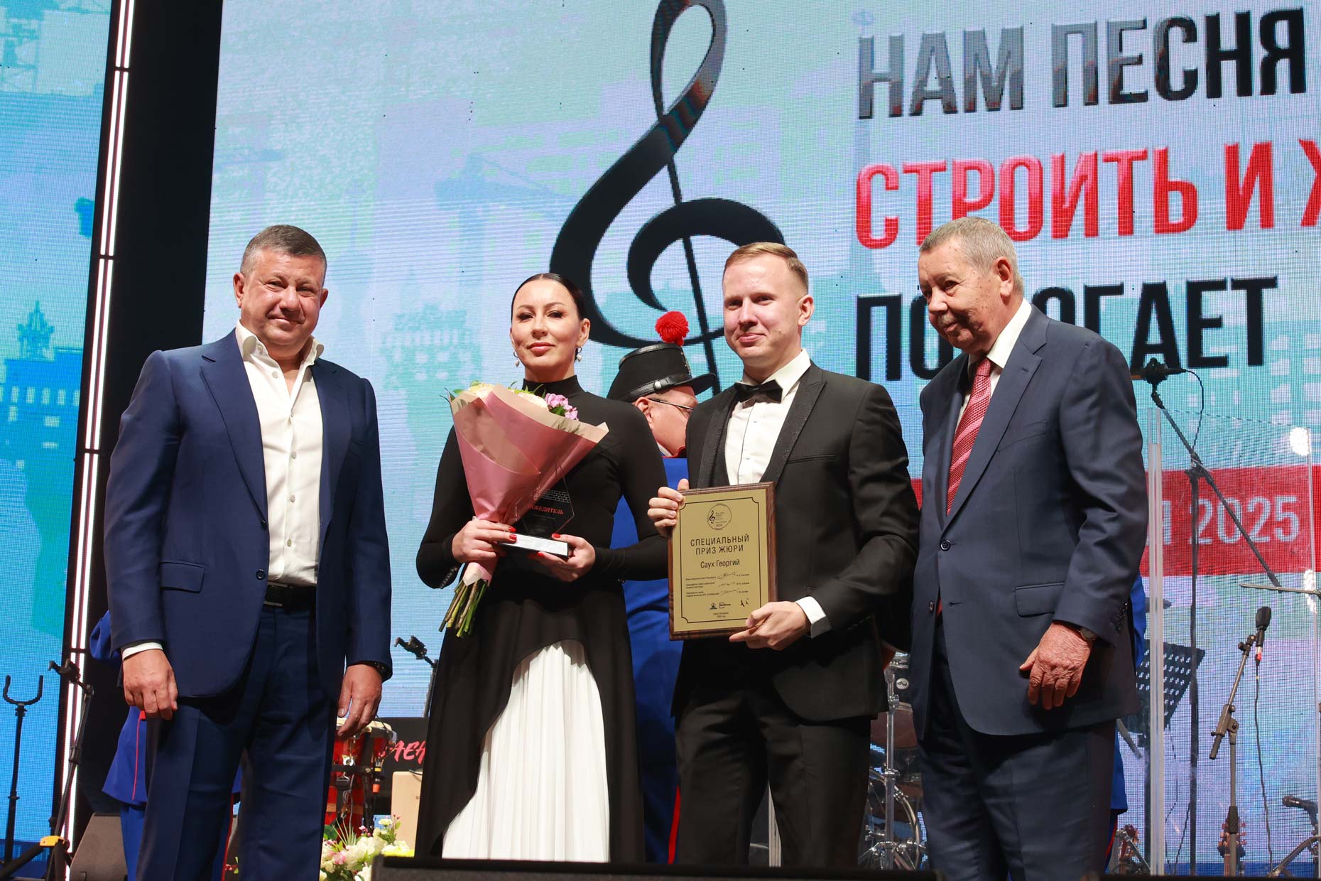 Во время торжественной части вручен приз победительнице 8 сезона вокального конкурса строителей «Нам песня строить и жить помогает» Екатерине Рикуновой. Екатерина стала также обладателем приза зрительских симпатий — по итогам голосования зрителей в финальном туре. Специального приза жюри за яркость и артистизм удостоен Георгий Саух. Награды лучшим поющим строителям вручил председатель совета директоров Холдинга Sel Group Максим Шубарев. Холдинг поддерживает проведение вокального конкурса с момента его появления в программе праздника День строителя.