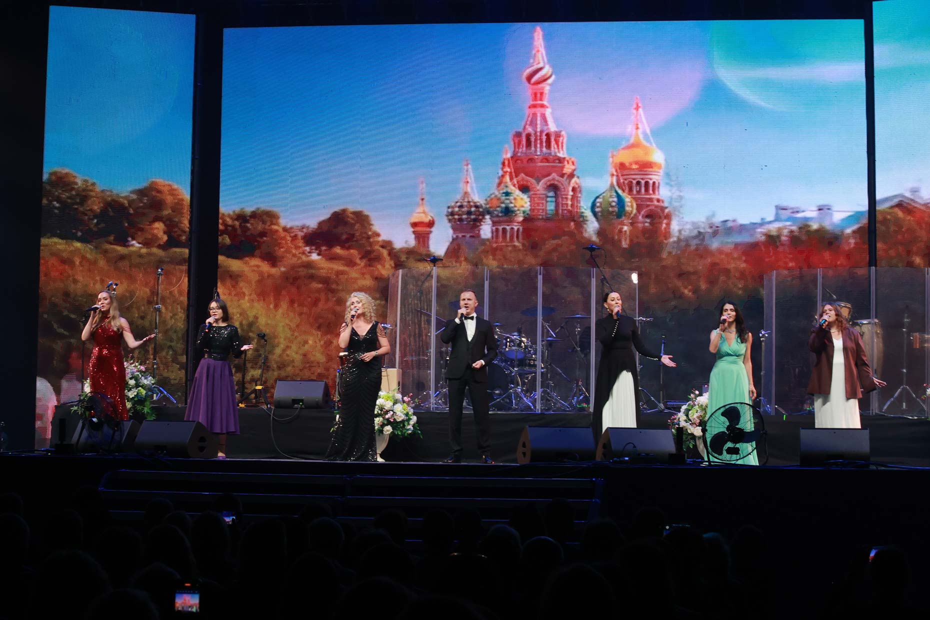 Екатерина Рикунова и Георгий Саух исполнили сольные номера. А финалисты конкурса вышли на сцену с блестящим, наполненным любовью к родному городу исполнением песни «Санкт-Петербург».