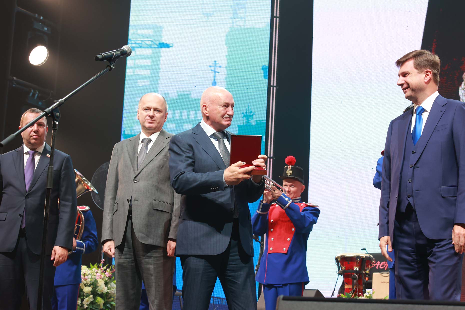 Открыла концерт церемония награждения. Почетного знака «Заслуженный строитель Санкт-Петербурга» удостоен советник генерального директора ЗАО «Трест 101» Вячеслав Прокофьев. Компания в этом году отметила 70-летний юбилей.